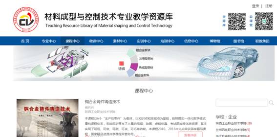 国家职业教育材料成型与控制技术专业教学资源库"于2015年6月正式获批立项(教职成函〔2015〕10号,项目编号2015-15)。由陕西工业职业技术学院主持,联合全国10所高职院校、11家企业、4家行业机构、3家专业杂志社等单位立项共同建设。依托高等教育出版社"智慧职教"平台,搭建课程学习、职业培训、社会服务、交流互动、在线测试等五个子平台。建设有专业教学、职业培训与社会服务、专业拓展三大类资源,包括专业建设园地、课程中心、微课中心、素材中心、实训(虚拟,专业技能大赛)中心、培训中心、信息中心(产业、行业、企业、院校发展信息,企业典型案例)、博物馆、图书馆等共九个子库资源。涵盖铸造技术专业,辐射金属材料及热处理技术、金属材料检测技术、金属锻压技术等四大专业群。采用数字化虚拟现实技术,开发优质教学资源;建成了11门专业主干课程、搭建了30门个性化学习课程、制作微课300个以上、资源库素材总量达15000条以上。通过现代信息技术、网络技术,实现"能学、辅教"即导学、导做、辅教、助训、可评等五大功能,优质教学资源共建共享。是集资源检索、信息查询、资料下载、专业教与学、企业员工技能提升、就业创业者培训和教育等功能于一体的数字化、开放式、共享性、专业学习与服务平台,为职业院校教师教学、企业职工培训、学生和社会学习者自主学习服务。