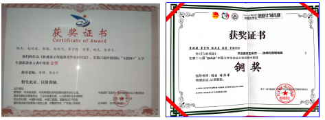 图3 专业群学生获全国互联网+创新创业大赛金奖、全国挑战杯金奖铜奖