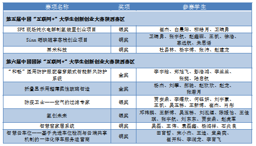 表3“互联网+”大学生创新创业大赛获奖名单