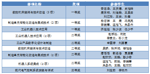 表1 全国职业院校技能大赛获奖名单