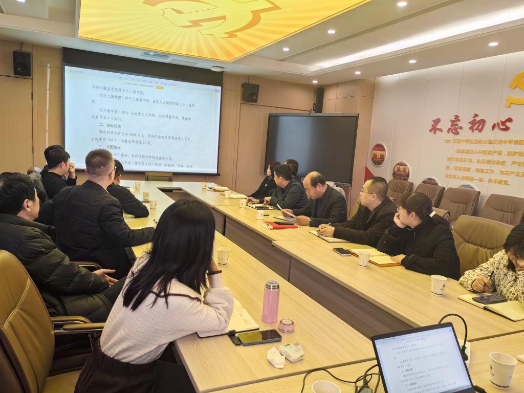 会上,梅创社副校长对本年度各二级学院(部)科研工作重点目标和任务进行了部署。他指出,各二级学院(部)要合力推动学校科技创新工作高质量发展,一是要夯实科研工作的重要地位,加强科研工作任务的顶层设计和规划布局。二是强化科研团队建设与实力提升。聚焦科研团队的建设和发展,努力打造具有创新精神和团队协作能力的科研团队。三是要构建高水平的产学研协同创新平台。通过强化工程中心、技术研发中心等科研创新平台建设,加快完善产教融合的协同育人机制。随后,科研处刘引涛处长就2025年全校科研工作的任务指标进行了详细解读。