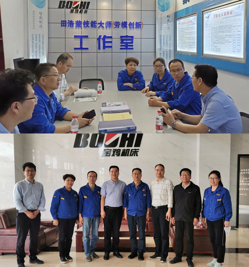 期间,袁炜书记介绍了宝鸡机床集团有限公司的基本情况。当介绍到“田浩荣技能大师(劳模创新)工作室”时,刘永亮副书记驻足聆听、详细地听取了该工作室的介绍。“田浩荣技能大师(劳模创新)工作室”先后被授予“陕西省示范性职工(劳模)创新工作室”、“国家级技能技能大师(劳模)创新工作室”,获得“全总职工创新工作室攻关项目资金”奖励。先后被授予“陕西省示范性职工(劳模)创新工作室”、“陕西省十佳职工创新工作室”、“国家级技能大师工作室”、“全国示范性劳模和工匠人才创新工作室”,其先进做法和经验在全省推广交流,为企业数控机床市场占有率的大幅提升和“宝鸡机床”品牌做强做大做出了突出贡献,为企业技术攻关、技艺传承、技能人才培养起到了重要的示范引领作用。