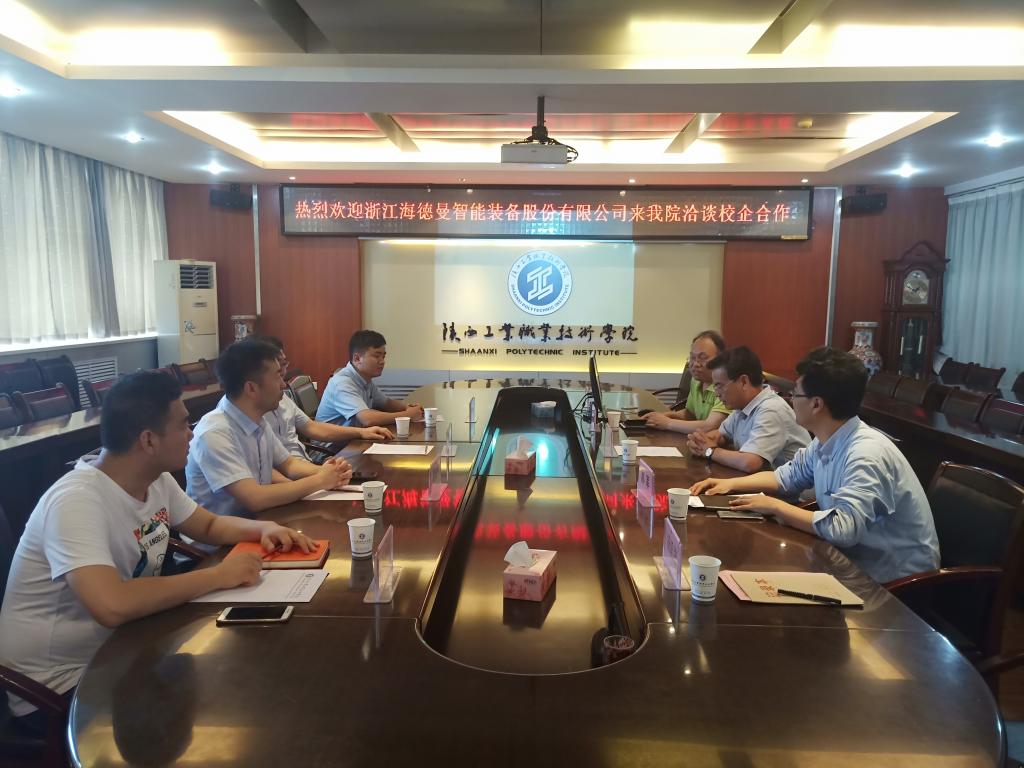 海德曼公司白生文总经理对陕西工院的热情接待表示感谢,同时介绍了浙江海德曼智能装备股份有限公司的发展历程,并强调在公司的发展中我院往届优秀学生为此做出了突出的贡献。他希望与陕西工院通过开展“海德曼订单班”,加深合作,招纳更优秀的毕业生来公司工作。
