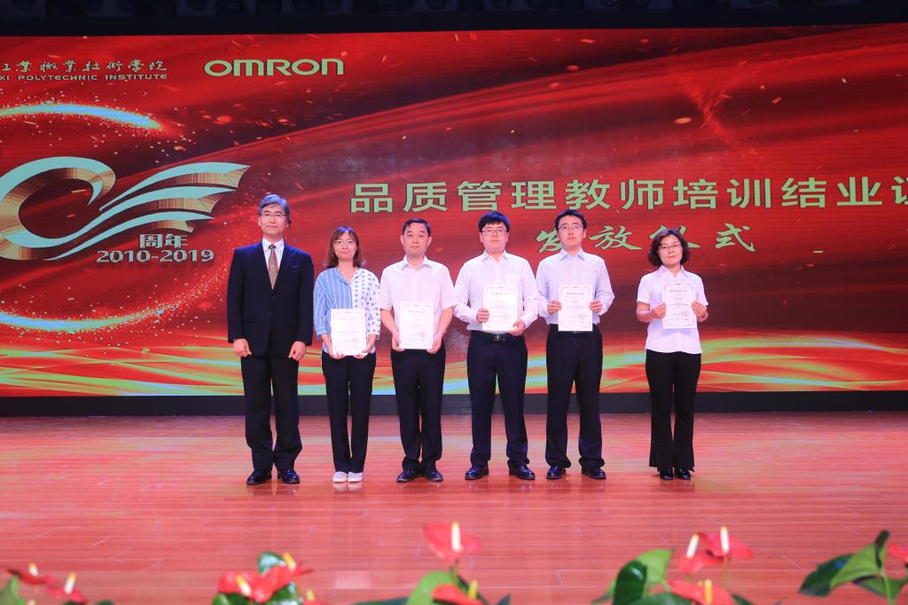 随后,欧姆龙(中国)有限公司总经理中道教显为欧姆龙班捐赠了奖学金并为参加品质管理教师培训的教师颁发结业证书。在电气工程学院副院长夏东盛介绍了2019届欧姆龙班就业情况后,欧姆龙各公司领导向2019届欧姆龙班毕业生颁发结业证书。