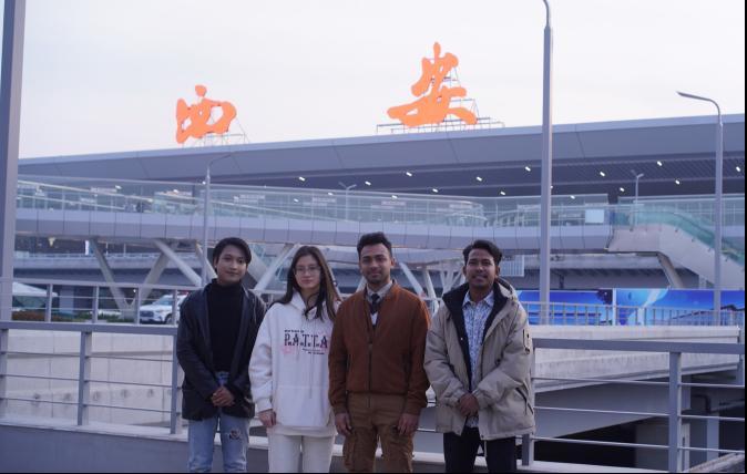 除了技术调研,留学生们还体验了航站楼内的多元化服务设施,包括国际化餐饮区、文化展示区以及便捷的自助服务设备。航站楼内随处可见的唐风装饰、壁画和雕塑,让大家仿佛穿越回了盛唐时代。一位来自哈萨克斯坦的留学生感慨道:“这里不仅是一个机场,更像是一座文化与科技交融的艺术馆,展示了中国的开放与包容。”