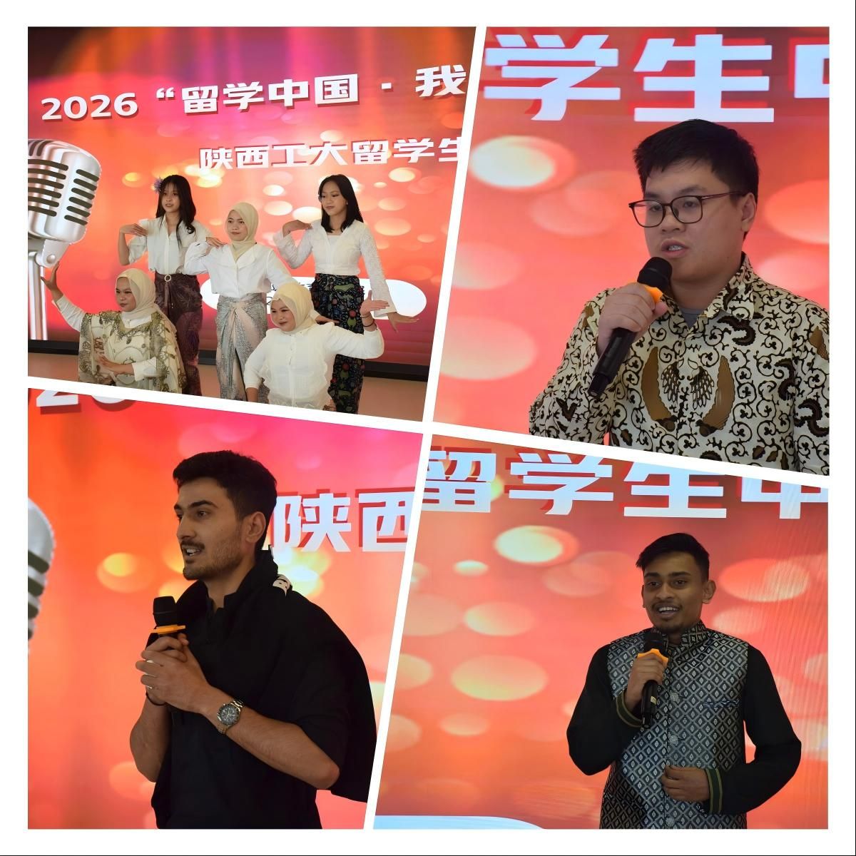 比赛在热情洋溢的开场舞中拉开帷幕。参赛选手们围绕“留学中国”主题,从不同角度分享了自己在陕西工大的学习生活、文化体验和心路历程,有的讲述初来中国时的忐忑与适应,有的分享与中国朋友结下的深厚情谊,有的表达对中华文化的热爱与理解。真挚的情感、生动的表达,赢得了现场观众的阵阵掌声。