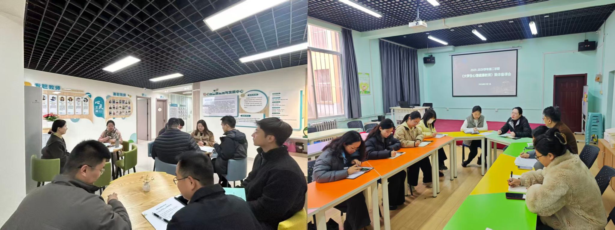 为持续提升《大学生心理健康教育》课程教学质量,强化心理育人实效,3月1日,心理健康教育教研室分别在渭城、经开两校区同步组织开展2025-2026学年第二学期《大学生心理健康教育》集体备课会。心理咨询中心全体专职教师、各校区心理任课教师全员参会,凝心聚力研教学,真抓实干促提升。