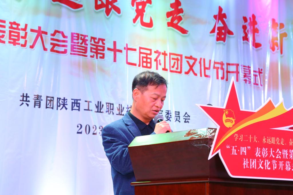 大会在庄严的国歌声中拉开帷幕。党委学工部部长、学生处处长郝军宣读了《关于表彰2022-2023 学年陕西工业职业技术学院共青团先进集体、先进个人的决定》,随后领导嘉宾分别为全省高校团建示范单位培育创建单位、五四红旗团总支、五四红旗学生会、优秀学生社团、五四红旗团支部、优秀教师团干部、优秀学生团干部、优秀团员、青春榜样、优秀志愿者的获奖集体代表和个人颁发奖牌和获奖证书。