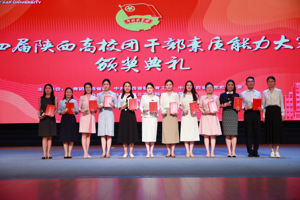 共青团陕西省委学校部部长郝鹏涛为专职团干部组一等奖获得者颁奖,我校教师团干部王凯悦