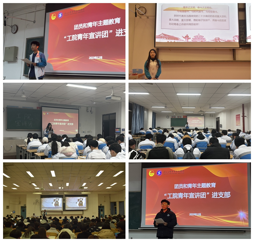 咸阳市青年讲师团成员胡瑞霞和晁晴玮分别围绕“挺膺担当”和“航天精神”为主题,引经据典与团员和青年共同体悟原理、答疑解惑、交流感想,结合我国各行业先辈们矢志报国的奋斗故事,引导青年学子筑牢对党忠诚、树立远大理想,立足学科特长,用青春行动谱写建功新篇章。马院青年教师讲师团立足实际,遵循教育规律,结合学校团员和青年特点,创新方法,以理论结合实际,用故事以小见大,围绕“坚定理想信念”“党的自我革命”“坚定文化自信”“生态文明建设”等内容,引导学生感悟思想伟力,接受理论的滋养,汲取前行动力,不断为学生筑牢坚实的理论根基和铸造充盈的精神内核。青马学员们利用晚自习时间深入各二级学院团支部中,以学生的视角讲好新时代十年的伟大成就与变革,围绕着贴合学生生活实际的“文化自信”“科创报国”“乡村振兴”等内容,充分发挥朋辈示范引领的作用。