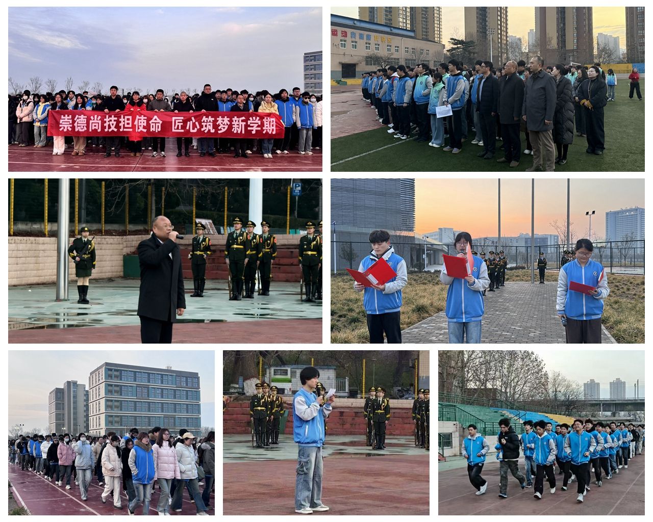 师生在国旗下接受“崇德尚技担使命 匠心筑梦新学期”主题教育