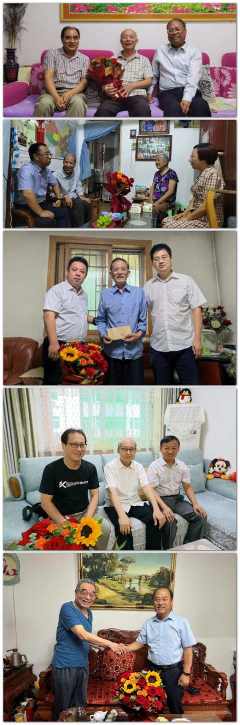 金桂飘香送祝福,雨中慰问暖人心。在第38个教师节和传统佳节中秋节即将来临之际, 为弘扬新时代尊师风尚,激励广大教师热爱教育事业,积极进取,开拓创新,推动学校各项事业全面发展。9月8日上午,我校党委书记惠朝阳、校长刘永亮及学校领导班子成员一行,冒雨分别走访慰问了离退休老教师代表,并为他们送上教师节、中秋节的美好祝福,热情邀请离退休老教师们去新校区走一走、看一看,共同见证几代陕西工院人新校区梦的圆梦时刻,希望他们保重身体、生活顺心、继续为学校的教育事业发展建言献策。