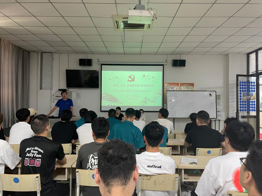 为积极部署2022年暑期社会实践活动计划安排,教育引导我校学生走出校门,在社会大课堂中“受教育、长才干、作贡献”,以实际行动迎接党的二十大胜利召开,6月24日,电气学院组织2021级在校生在行知楼A欧姆龙教室开展了暑期社会实践活动动员大会。
