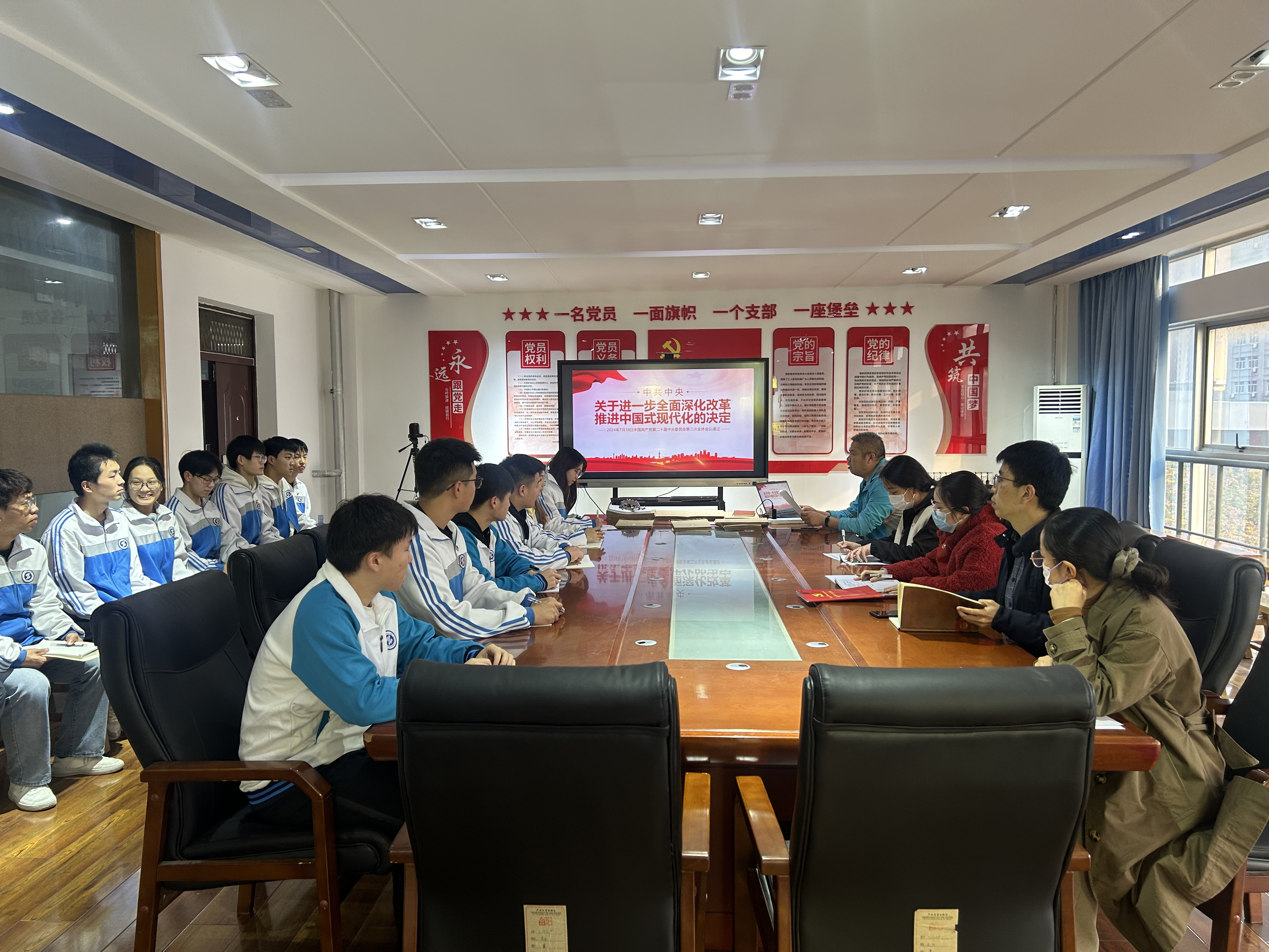 活动伊始,支部书记夏远贵同志对党的二十届三中全会背景、意义及主要内容进行了详尽介绍,带领大家学习了《中共中央关于进一步全面深化改革、推进中国式现代化的决定》重点内容。