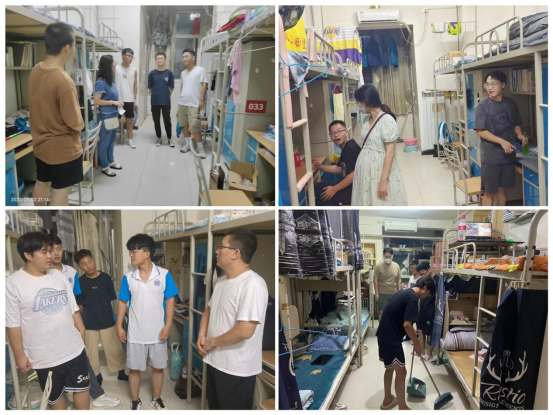 9月3日晚9点后,机械工程学院党总支书记苏宏志、副书记郭旭华带队,学工办全体辅导员、班主任深入学生宿舍,与同学们进行了亲切交谈,党总支书记苏宏志勉励同学们要及时调整作息,合理安排新学期时间,积极调整心态,培养良好的生活习惯,尽快进入学习状态,珍惜时光,充实自我。郭旭华书记强调合理安排自己的课余时间,在认真学习专业知识的同时,也要积极做好个人规划,争取在新学期有更大的进步。辅导员与班主任嘱咐大家要注意自己的人身、财产安全,谨防诈骗,着重强调大家要注意宿舍水电安全,防患于未然,严格遵守宿舍规定。同学们表示自己定会不负老师的殷切关怀,用实际行动开启新学期新篇章。