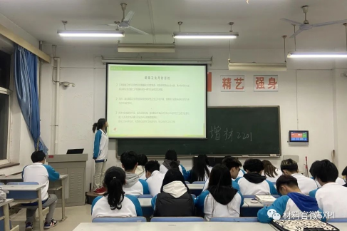 开展主题班会,激发内生动力。晚自习期间所有班级开展“爱国卫生月”宣传教育主题班会,遴选学生党员、入党积极分子从讲文明、铸健康、守绿色、重环保等四个方面进行宣教,引导广大学生从个人做起,从点滴做起,主动自觉参与“志愿服务”“绿色出行”“垃圾分类”“光盘行动”等实践活动,把文明健康、绿色环保的生活方式融入到日常行动中。