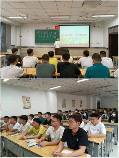 5月18日下午,航空学院学生第一党支部书记宋远社、宣传委员师小娜以“学习青年榜样 接力青春火焰”为题,为支部全体学生党员、积极分子上了一堂生动的党课。