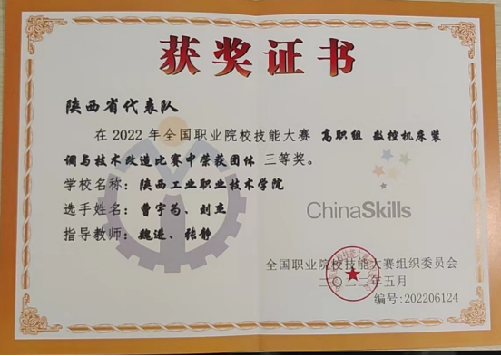 8月24-28日,2022年全国职业院校技能大赛高职组“数控机床装调与技术改造”赛项在山东省淄博市淄博职业学院举行,共有来自全国52个省市自治区的代表队参加了本次比赛。我校由航空工程学院魏进、张静两位老师指导的曹宇为、刘杰二位选手经过三天的激烈角逐,最终荣获团体三等奖。
