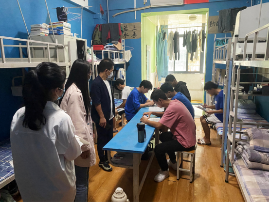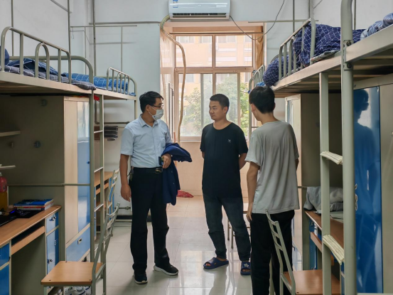 9月30日中午,航空学院党总支书记刘军旭带队,全体辅导员深入学生宿舍,宣讲咸阳周边疫情严峻形势,提醒学生遵守学校疫情防控制度,对自己、家人、社会负责,众志成城,共克时艰,携手筑牢疫情防控坚实屏障。