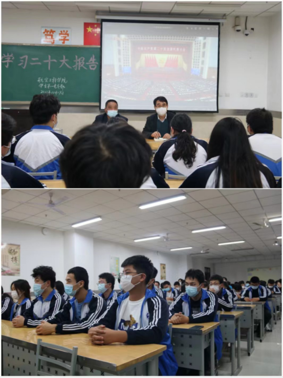 为深化对党的二十大精神的学习,10月19日下午,航空学院学生党支部在崇明楼101开展了学习贯彻党的二十大精神学习会,参加学习会的有航空学院党总支书记刘军旭、党支部书记宋远社以及全体预备党员和积极分子。