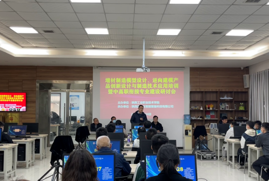 为更好地贯彻《国家职业教育改革实施方案》和《关于深化现代职业教育体系建设改革的意见》精神,稳步落实国家关于实施“1+X”证书制度试点工作的相关文件要求,促进中高职协调发展、系统培养高素质技能型人才,助力专业建设和课程改革,3月24日至26日,为期3天的“增材制造模型设计、逆向建模产品创新设计与制造技术应用培训及中高职衔接专业建设研讨会”在我校渭城校区三维数字化设计与制造基地举办。来自全省23所中职学校相关专业院系主任、专业带头人等共68名教师参与了培训和研讨。