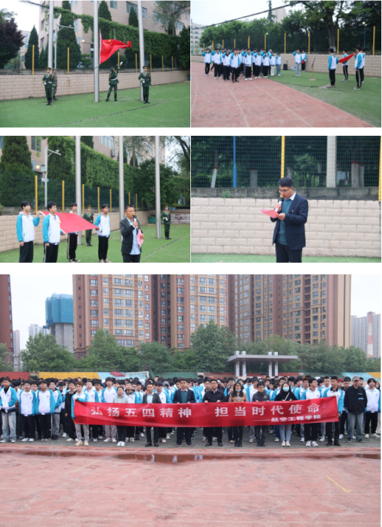 为深入学习贯彻习近平总书记关于青年工作的重要论述精神,进一步组织青年学生学习青年运动的光辉历程,继承和弘扬“五四”精神,引导同学们坚定理想信念,赓续红色基因,鼓励同学们奋发学习,勇担时代使命。4月24日,航空工程学院在渭城校区操场组织开展了“弘扬五四精神,担当时代使命”主题升旗仪式。参加此次升旗仪式的有校团委书记赵双军、航空学院党总支书记刘军旭、学工办主任张旭、学工办全体辅导员、学生团员代表及2022级全体学生共600余人,活动由机器人2101班祝松波同学主持。