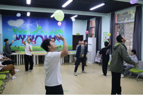 飞舞的气球这个活动可以让大家宣泄不愉快,体验保护与竞争,通过这一部分的活动达到休闲放松的目的,缓解紧张感。