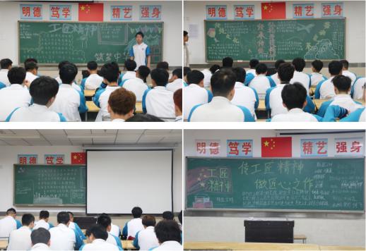 班会课上,各班班长通过展示各行各业的工匠精英事迹,并结合大国工匠案例和学校优秀师生事迹,以实际案例引导同学们对“工匠精神”进行深刻了解,阐述了“精益求精、执着专注”的工匠精神内涵,工匠精神与“创新创造”的辩证关系,匠心筑梦的家国情怀。同学们理解了“精于工、匠于心、品于行”的工匠精神内涵,感受到匠人身上追求卓越的精神品质。最后要求全体学生增进认识、注重实践,树立技能报国远大理想,传承精益求精工匠精神,努力成长为优秀技能人才。