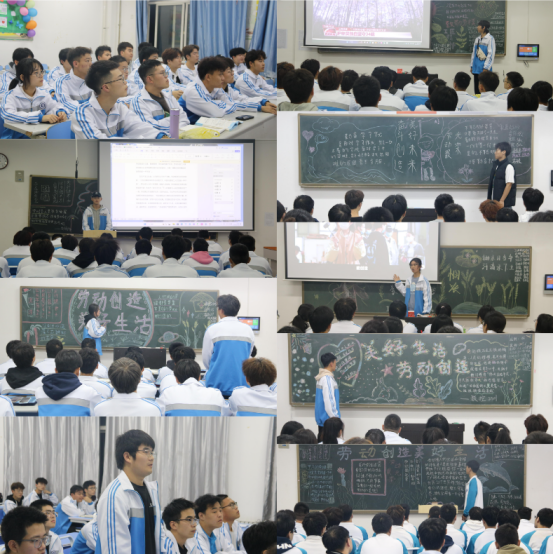 班会前期,航空学院以班级为单位,提前仔细准备“劳动创造美好生活”主题黑板报。班会开始,各班班长首先向同学们介绍了劳动的意义,宣讲了习近平总书记同全国劳动模范代表座谈时的讲话内容:“劳动是推动人类社会进步的根本力量。幸福不会从天而降,梦想不会自动成真。实现我们的奋斗目标,开创我们的美好未来,必须紧紧依靠人民、始终为了人民,必须依靠辛勤劳动、诚实劳动、创造性劳动。”各班就日常生活中力所能及的劳动内容、劳动模范先进事迹进行了交流,结合当下学习生活实际,交流自己对于“劳动如何创造美好生活”的理解,在交流中体悟平凡劳动者的不凡贡献。大家决心通过个人劳动不懈奋斗,努力成为热爱劳动、勤于劳动、善于劳动的高素质劳动者,并自发开展一系列义务劳动服务活动。