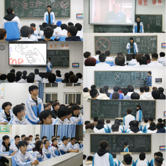 班会前期,航空学院以班级为单位,提前仔细准备“珍爱生命,远离烟草”主题黑板报。班会开始,各班班长向同学们介绍吸烟对身体健康的危害,科普禁烟标识,播放有关吸烟危害的健康教育视频,宣读“远离烟草我们应该怎么做”倡议书。各班通过抢答题的形式,加深对烟草危害相关知识的了解,在互动交流中增进认识。在科学数据的警示与健康生活教育引导下,同学们表示将会理性认识吸烟危害,自觉拒绝烟草,文明健康生活。