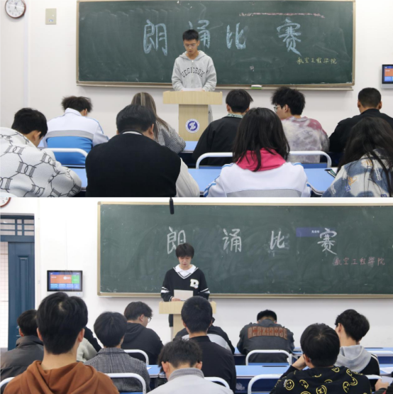 为进一步弘扬爱国主义精神,坚定理想信念,增强爱国主义教育,激发学生传承爱国之志,勇担时代使命,航空工程学院于11月8日下午在崇文东楼开展“诵读爱国诗歌,坚定报国之志”主题朗诵比赛。