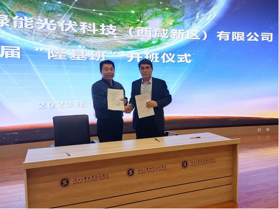 旌旗猎猎催奋进,踌躇满怀铸班魂。隆基硅片100GW项目组负责人李庆新与航空工程学院党总支书记刘军旭代表校企双方签订校企合作协议,标志着“隆基班”正式成立,至此开启新的征程。