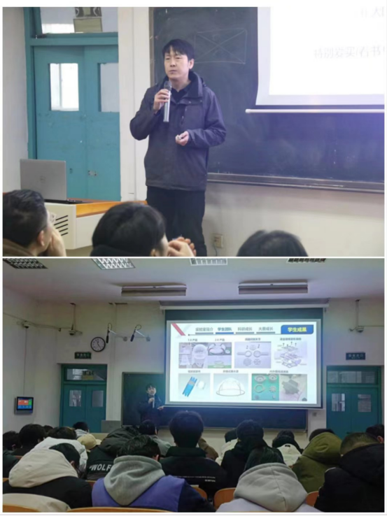 本次讲座,王伟老师首先介绍了“功能薄膜与涂层技术实验室”,列举了实验室学生及团队取得的科研成果和大赛成绩,并以生动的实例讲述荣誉背后的奋斗故事,向学生“传经送宝”,帮助学生进一步坚定信心,指明前进的方向。其次,就如何培养学生的科研能力、大赛能力进行具体阐述,由理清结构到总结汇报再到独立完成的成长路径,构建“学习-大赛-科研”全方位培养体系。最后,以习近平总书记讲话:“一切劳动者,只要肯学肯干肯钻研,练就一身真本领,掌握一手好技术,就能立足岗位成长成才,就都能在劳动中发现广阔的天地,在劳动中体现价值、展现风采、感受快乐”,鼓励学生要笃定目标,锲而不舍,不断学习、不断磨砺、不断成长。