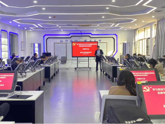 党总支书记刘军旭指出,要深入学习领会习近平总书记重要讲话精神,切实转化为做好各项工作的实际行动。习近平总书记在安徽考察时的重要讲话,围绕深入贯彻党的二十大和二十届三中全会精神、加快科技创新和产业转型升级、推进深层次改革和高水平开放、着力构建城乡融合发展新格局、进一步推动文化和旅游融合发展、毫不放松坚持党的领导加强党的建设等方面提出重要要求,高屋建瓴、内涵丰富,对于我们进一步做好教育工作,具有重要的指导意义。我们要深入学习贯彻习近平总书记重要讲话精神,坚信笃行、好学能文,更加有力有效地履行党的意识形态重镇职责使命。
