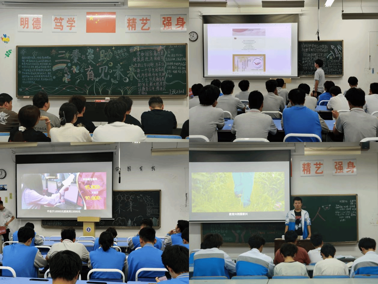 观看视频后,各班班长详细宣读了国家及陕西省相关资助政策,对各项资助政策的覆盖范围、申请条件、资助标准及流程进行了清晰解读,主要包括国家助学金、国家奖学金、国家励志奖学金等内容。引导学生明确,资助不仅是经济上的帮扶,更是精神上的激励,鼓励受助学子将这份温暖关怀转化为刻苦学习、砥砺前行的强大动力,勇担时代使命。在政策宣讲基础上,各班组织同学们围绕班会主题进行了深入的学习交流与互动讨论。同学们结合自身或身边案例,畅谈对国家资助政策的感受,表达了对国家、社会和学校关爱的感恩之情。