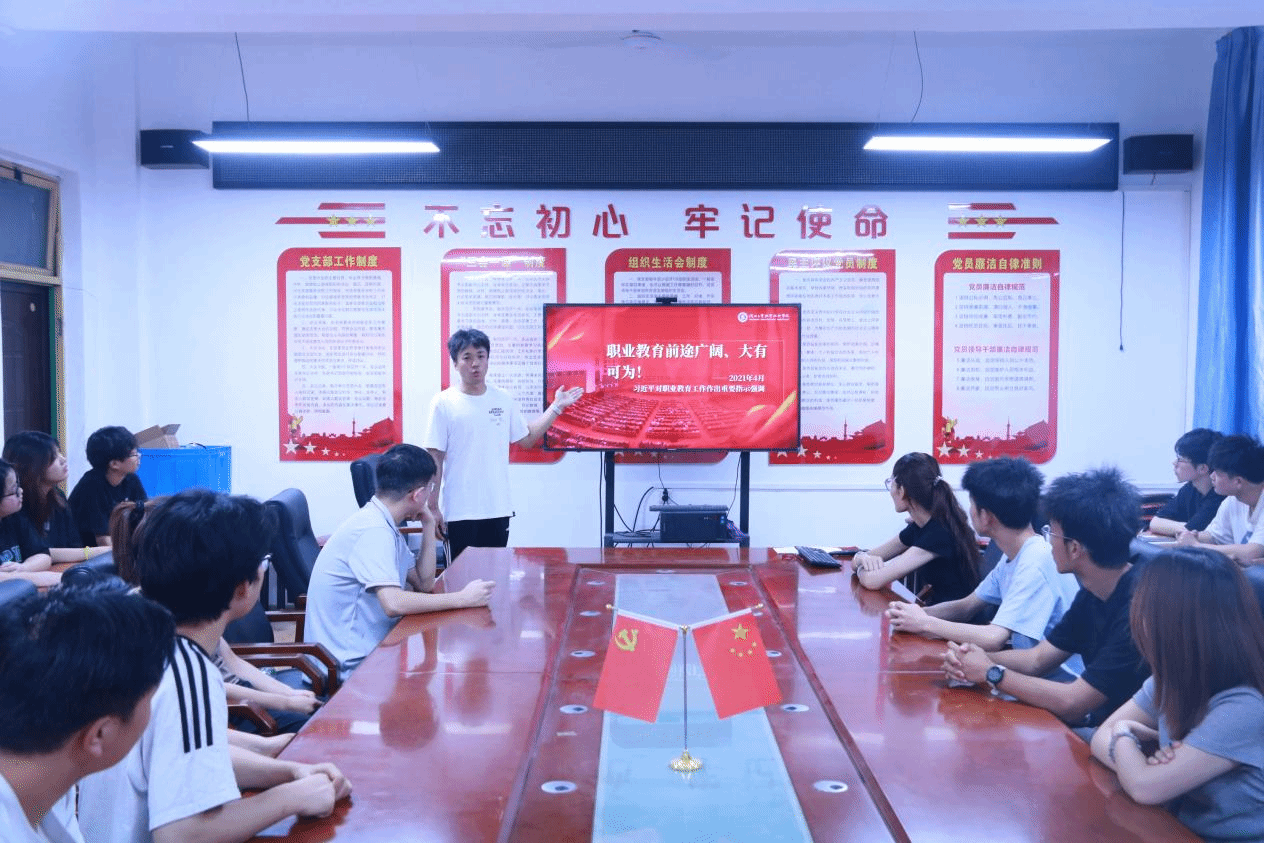 孙豪哲的宣讲内容详实、情感真挚,其从迷茫到坚定、从普通学子到技能标兵、从受助者到奉献者的蜕变历程,深深打动了在场的每一位同学。他用自己的实际行动证明,技能成才之路同样精彩,职业教育同样能成就出彩人生。