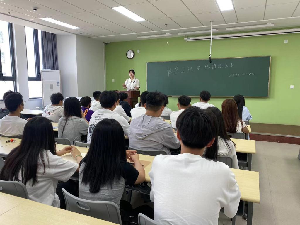 为加强对2023级新生迎新工作的组织与协调,确保新生报到、入学教育、事务办理、安全维稳等各项工作有序、简捷、高效进行,9月3日,信息学院学工办在崇理C406组织开展了新生班级学生助理培训会。2023级本科班班主任武丽丽、年级辅导员李丹参加了会议,会议由年级辅导员薛昊主持。