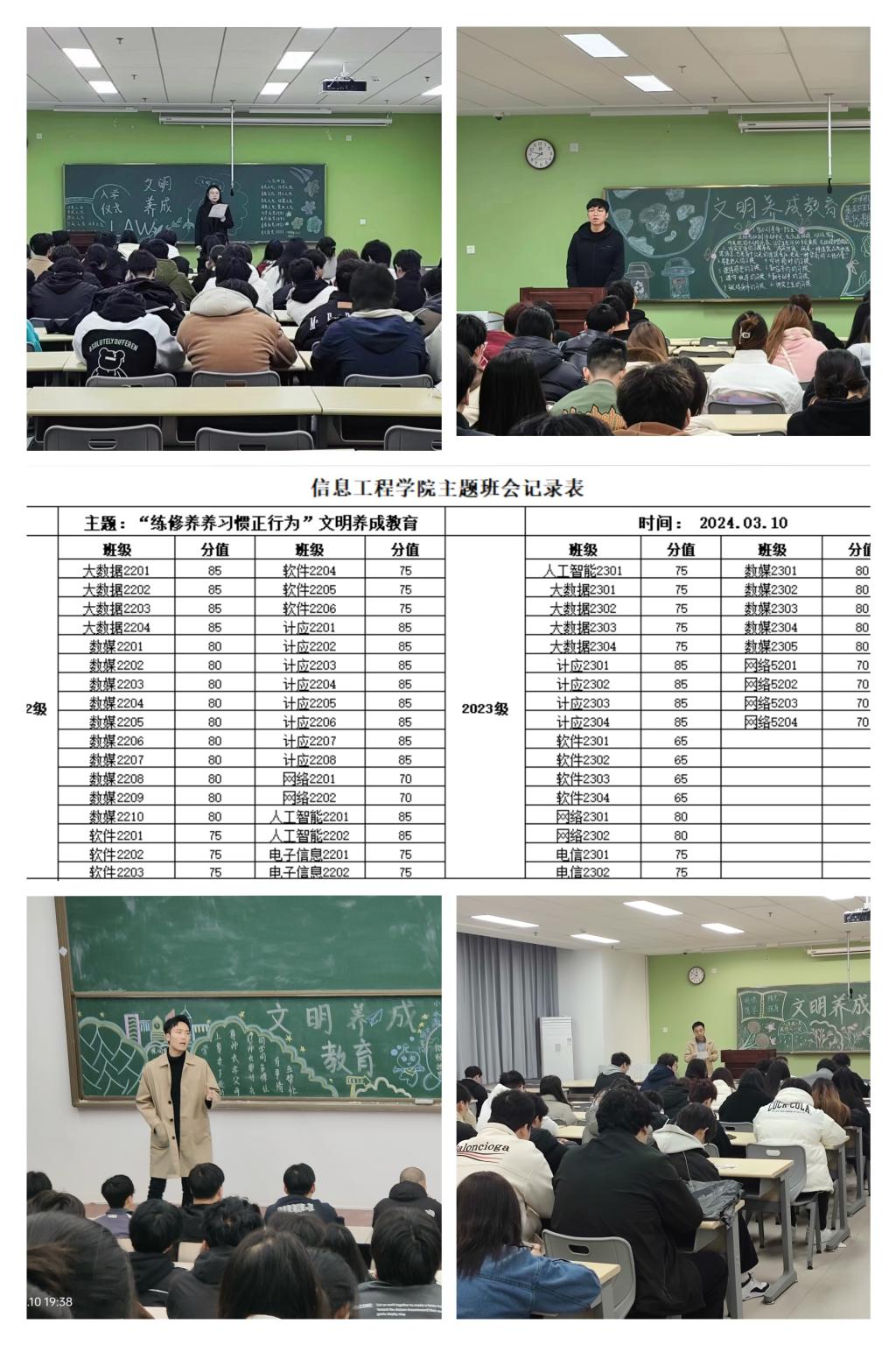 为进一步加强学院“三风”建设和学生日常管理工作,培养学生良好习惯,提升学生文明素养和综合素质,营造文明的校园文化氛围,3月13日晚,信息学院在大一、大二60个行政班组织开展“练修养 养习惯 正行为”文明养成教育主题班会。