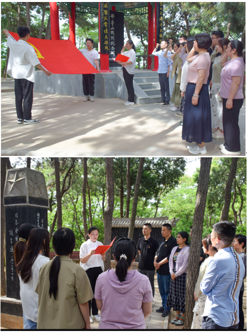 期间,党员们参观了爷台山反击战纪念馆,瞻仰了馆内珍藏文献、图片资料及作战物品,在聆听讲解中了解爷台山战斗始末,学习老一辈革命家收复失地的历史,体悟到革命成果的来之不易,深刻缅怀革命先辈,接受革命洗礼,传承革命精神。在爷台山战斗纪念碑前,支部书记李俊带领党员重温入党誓词,并上了一堂题为“严守党的纪律 保守党的秘密”的专题党课,她结合红色革命圣地历史,以革命先烈为了新中国的诞生勇于牺牲、甘于奉献、勇挑重担的革命精神为切入点,深入浅出地为大家讲述了老一辈无产阶级革命家守纪律、守规矩的感人故事。