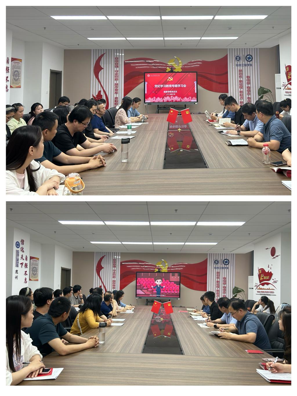 党纪学习教育启动以来,信息学院党总支始终将党纪学习教育作为一项首要政治任务,在学纪、知纪、明纪、守纪方面持续发力,切实推动党纪学习教育走深走实、见行见效,6月3日下午,信息学院党总支在崇理楼C-801召开党纪学习教育专题学习会,全体党员参加了学习。