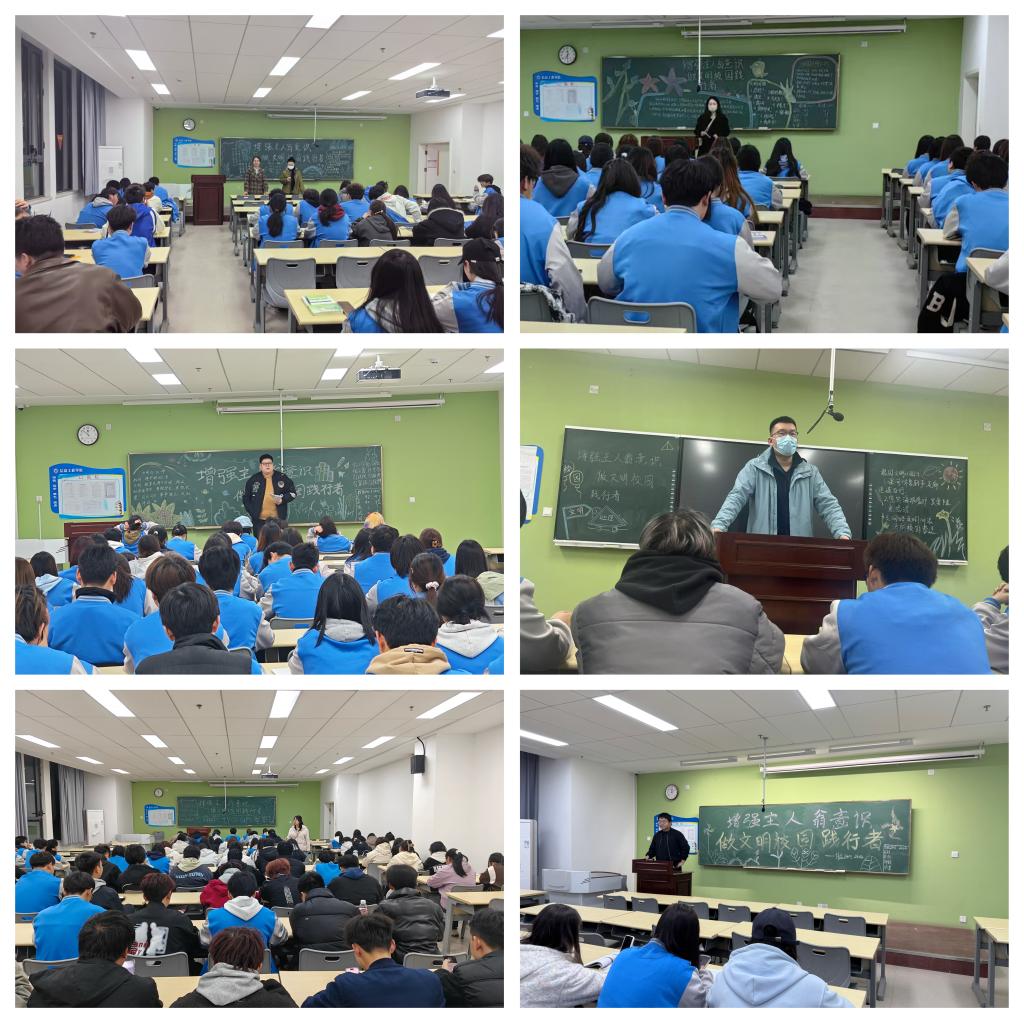 班会上,各班班主任组织同学们观看了文明校园主题宣传片,结合校园生活实际,引导同学们将个人成长与学院发展紧密结合起来,从自身做起,从小事做起,积极参与到文明校园建设的实际行动中,共同营造积极向上、文明和谐的校园氛围。随后,各班班主任组织同学们围绕“如何增强主人翁意识”、“如何做文明校园实践者”等话题展开热烈讨论。同学们踊跃发言,分享了自己对文明校园的理解和践行文明行为的经验。大家纷纷表示,要以此次班会为契机,进一步提高自身文明素养,争做文明校园的倡导者、践行者和监督者。