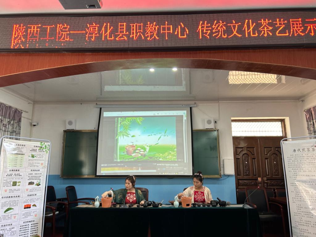 为积极落实学校深化“双百工程”建设助力乡村振兴工作方案,弘扬中华优秀传统文化,让茶文化走进校园,感受茶文化的魅力,财经与旅游学院学生党支部于6月5日赴淳化职教中心开展茶文化展示活动。