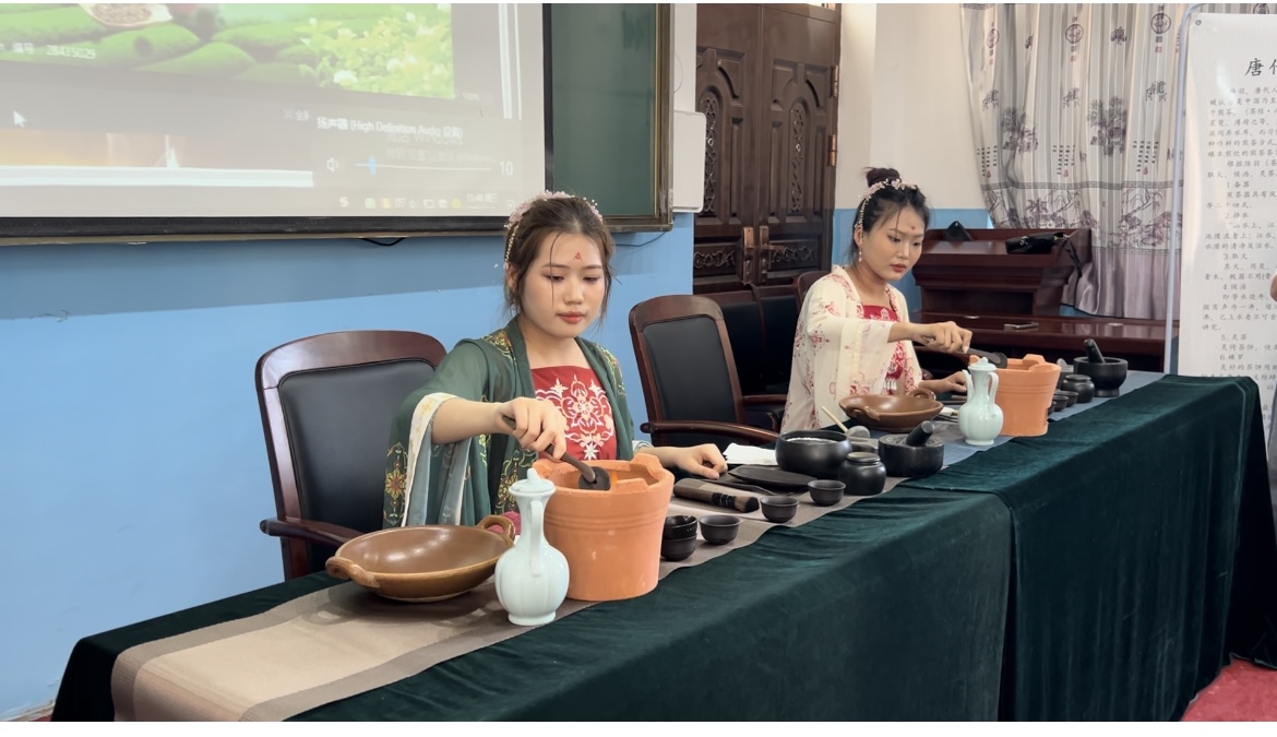 活动从谷雨节气的特点讲起,阐述了茶与节气的关系,深入介绍了茶文化的历史渊源、茶的分类、泡茶技巧以及品茶方法。随后,支部书记马文燕带领学生组织、指导职教中心的师生认知绿茶、黄茶、白茶、红茶、乌龙茶、黑茶等六大茶类的产地、特点、功效、制作工艺、冲泡技巧。酒店管理专业2301班郭艺欣等两名同学从备器、择水、取火、候汤、炙茶、碾罗、煎茶、酌茶、品茶等煎茶程序为职教中心的师生带来精彩的茶艺展示与表演。她们以娴熟的手法展示了茶艺的优雅与韵味,赢得了师生的一致肯定。活动现场气氛热烈,学生们通过听理论、看展示、亲自品,加深了对茶艺与茶文化的认识和热爱,让同学们在品茶香的同时,也感受到了茶文化的深刻内涵。