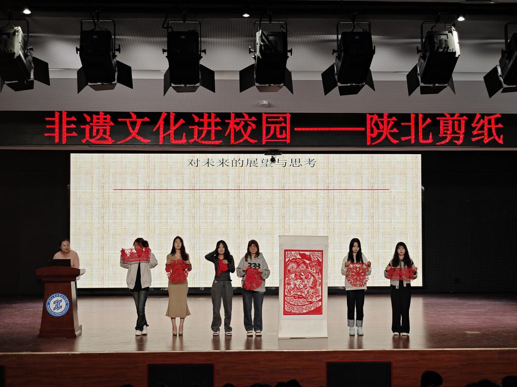 本次活动邀请安塞优秀民间艺术家—李夏瑶老师为同学们带来一场生动的陕北剪纸艺术的展示与讲解。李老师曾多次参加全国、全省以及全市的多次比赛,并取得了优异的成绩。她的作品《俩个老汉》在“我们的中国梦国农民画大赛”中获得金奖。剪纸《抗日英雄》《保卫家园》在“纪念中国人民抗日战争暨反法西斯胜利70周年一2015年全国剪纸名家精品展”中获得金奖。