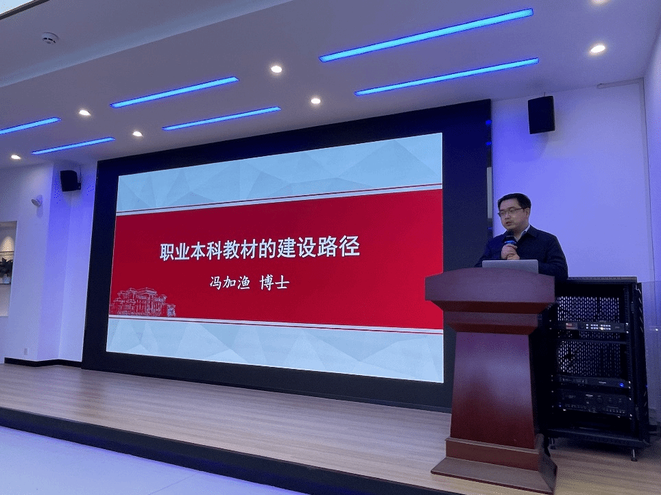 1 月 27 日上午,特邀陕西师范大学冯加渔教授作 “职业本科教材建设” 专题讲座,主要从教材建设的背景现状、基本思路和推进路径三个方面讲授如何开发优质新形态教材。随后,我院教师教学能力比赛国赛二等奖获得团队负责人赵玉静副教授通过 “教学能力比赛与专业课程教学融汇贯通” 实践经验为大家分享如何进行教学设计。下午的教材编写汇报讨论环节,各教材编写团队负责人依次围绕教材对接的课程定位、整体框架设计、核心特色亮点及初稿完成时间等内容进行详细汇报。