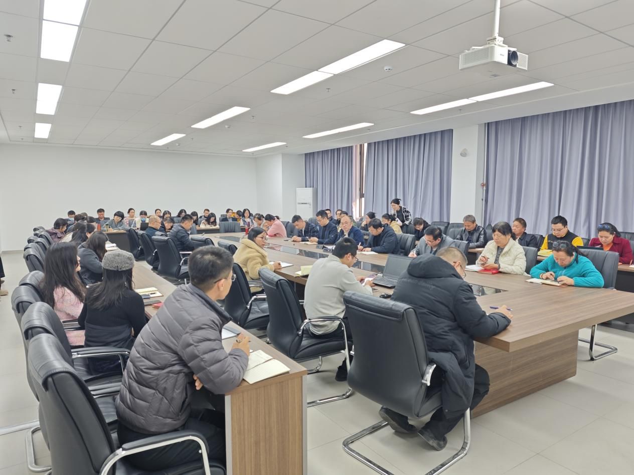 12月8日,商贸与流通学院党总支在604会议室组织召开党的二十届四中全会精神集体学习会。会议紧扣全会通过的《中共中央关于制定国民经济和社会发展第十五个五年规划的建议》,聚焦高等教育与高等职业教育高质量发展主题开展集中学习。学院党总支副书记蒋鹏主持会议,全体教职工参会学习。