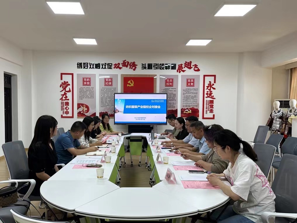为深化校企合作,推进产教融合,促进专产对接,提升人才培养质量,满足产业链对技能型人才的需求,5月23日,化工与纺织服装学院邀请咸纺集团秦越纺织有限公司生产部经理张栓平、陕西杜克普服装公司总经理谭雪峰、陕西服装工程学院服装学院执行院长徐彬及陕西依婷菲尔商贸有限公司人力资源总监张婷等6人在崇文楼806召开纺织服装产业链校企对接会。党总支书记杨修国、院长刘迪、服装与服饰专业带头人杨华、服装与工艺设计专业带头人袁丰华及服装教研室主任杨玫等人参加会议。会议由刘迪院长主持。
