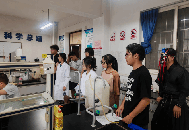 三组展演作品创意纷呈,将科学知识与文化、社会议题紧密结合。由赵家锐老师指导的《化学五行阵——青龙巡天》,将深奥的化学原理与中国传统文化巧妙融合,通过五种金属盐绚丽的焰色反应,呈现了一场精彩的视觉盛宴。由卢姣霖老师指导的作品则紧扣社会热点,以“居民区空气污染”为背景,通过经典的酚酞与氨水分子扩散实验,直观验证污染扩散原理,旨在引导学生将科学知识转化为社会责任感。由王雪老师指导的作品则上演了一场别开生面的“穿越科普剧”,通过向商朝大祭司比干科普“微塑料”的三个递进实验(发现、验证难降解性、制备可降解替代品),生动地传递了环保理念。