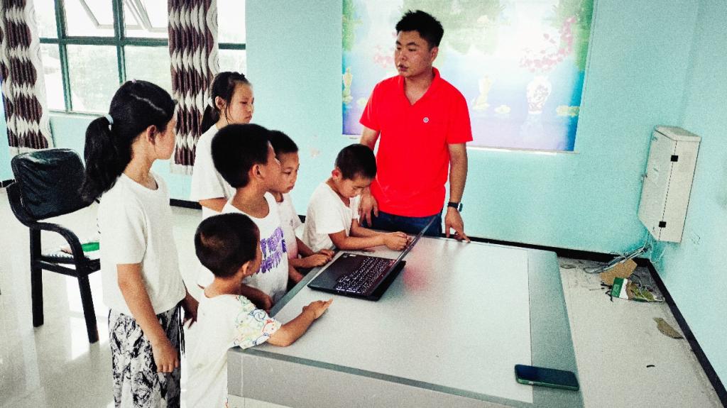 张凯结合视频演示和个人讲解,对上述的三个问题一一做出了解答。孩子们积极性高,都深入地参与到课堂中来,紧紧地围绕在“老师”身边,踊跃地进行提问,近距离地观看“老师”电脑播放的讲解动画和视频。利用新媒体教学的形式,既增加了课堂的生动性和趣味性,也使得留守儿童对房屋建筑、土木工程能更加全面和直观地了解。