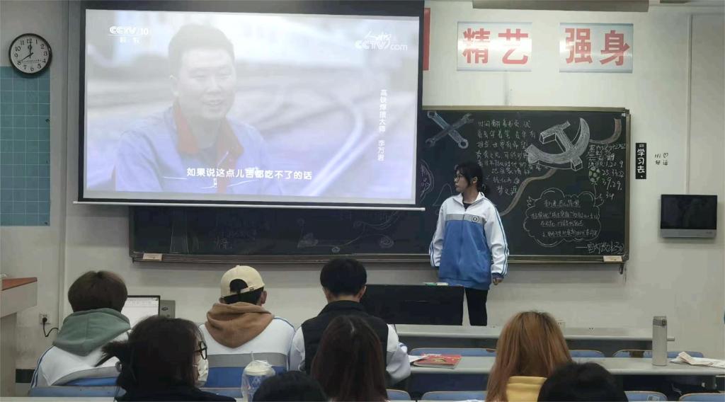 首先,由班主任向学生们介绍大国工匠李万君的优秀事迹,使学生们在先进事迹的感召下,充分感悟新时代工匠精神的强大力量。随后,集中观看《中国梦·大国工匠篇—高铁研磨师》、《人物-在平凡中平凡-李万君》、《巨匠之心,永驻于魂》等记录影片,深层次诠释工匠精神。最后,学生们结合所学所感积极发言,交流互动,畅谈自己对“工匠精神”的理解,纷纷表示在今后的学习、生活中,要努力实现自身价值、端正学习态度、明确学习初心,全身心地做好每一件事,学习工匠们坚守岗位、精益求精的工匠精神。